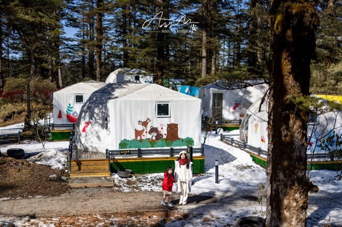 山顶也有住宿的地方,想必是拍摄星空的绝佳地点,一顶一顶的白色帐篷支起来,有机会来这里过夜。有很多玩乐的项目,雪地轮胎,滑雪场,可爱的房子拍照也非常可爱。