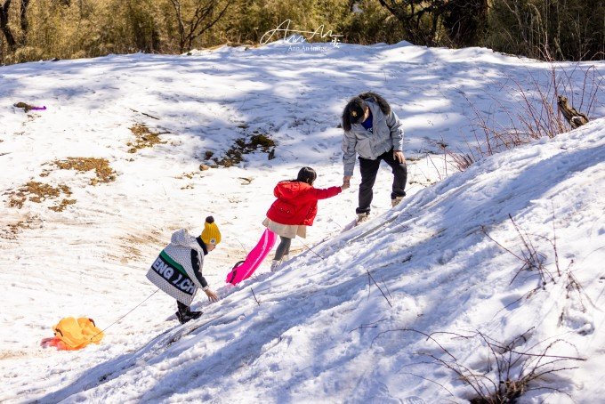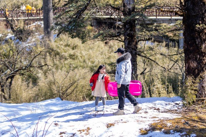 √玩雪道具山上的价格塑料雪铲20元、雪车60元,方便购买也可自带。瓦屋山平坦的环形栈道非常适合拉雪车,偶遇的小坡道都能让孩子玩尽兴。