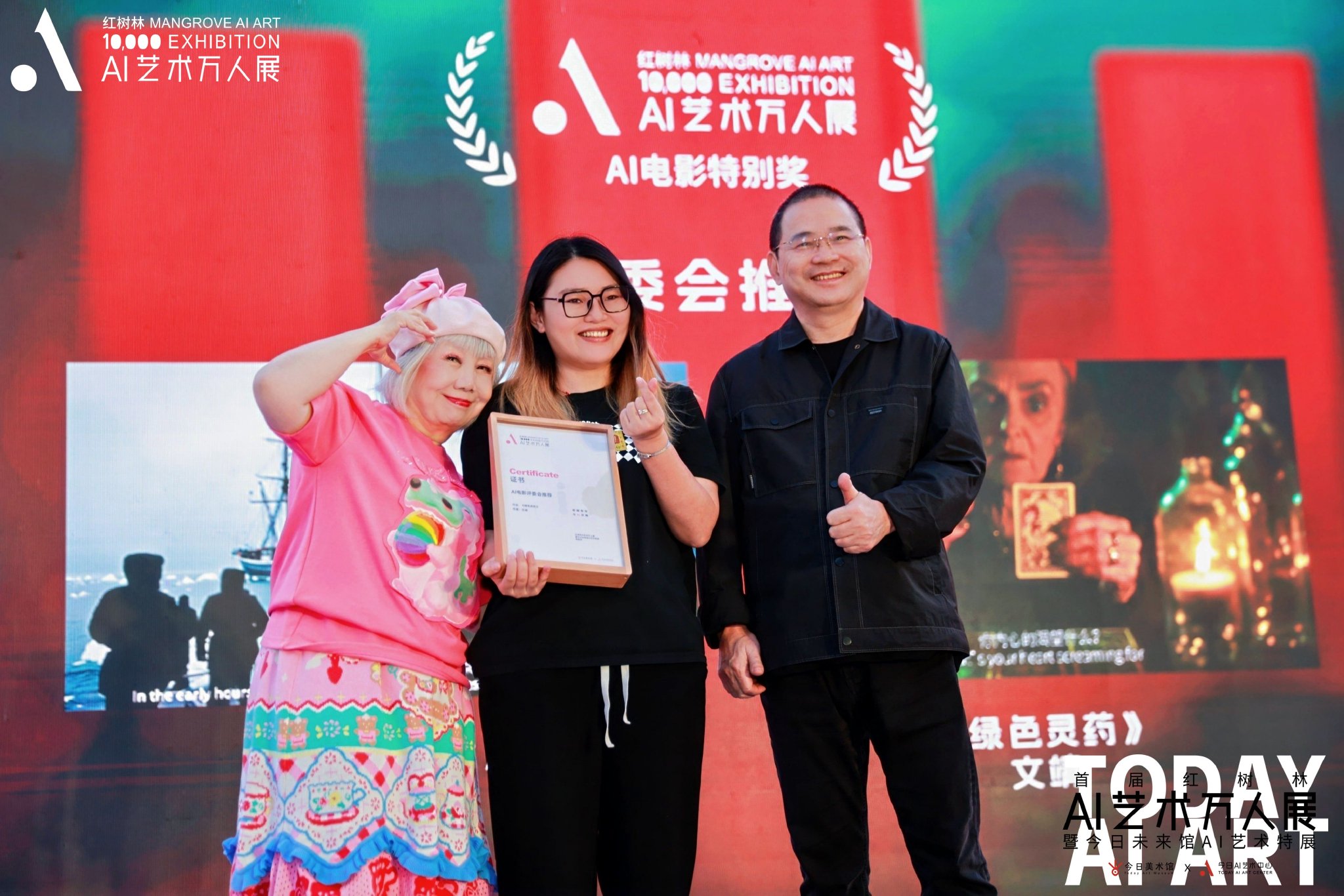 AI技术正在成为电影创作的新引擎,它不仅改变了电影的制作流程,更深刻地影响了电影的艺术表达。开幕式的另一个重要内容,是揭晓本次大展的AI电影、AI影像、AI音乐MV板块的大奖得主。获奖艺术家们将获得荣誉证书以及今日AI艺术中心为他们提供的全方位艺术支持。
