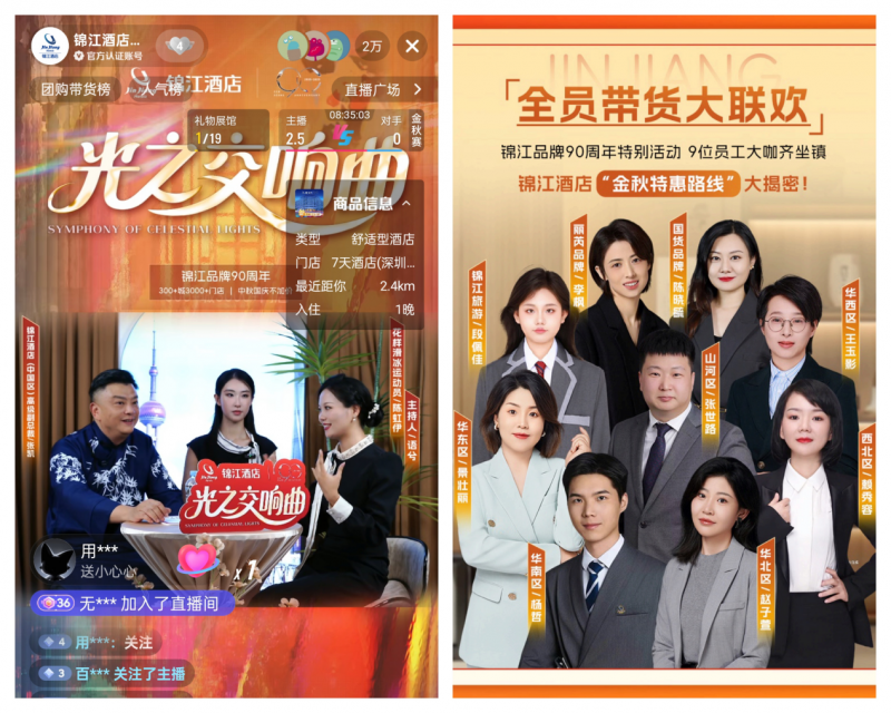 对于不能抵达现场的会员及消费者,锦江酒店(中国区)特邀旅游领域知名博主与9位90后锦江员工一起,通过官方视频号现场直播互动,带领大家在线沉浸式逛展。他们循着镜头节奏细致讲解每一个展区背后的故事,用年轻人独有的鲜活视角,分享在日常工作中的暖心瞬间,让屏幕前数以万计的观众看到了更立体、更有温度的锦江品牌形象。据后台数据,当日直播曝光量超740万人次,总互动超10万次。