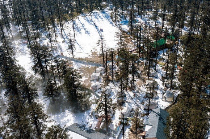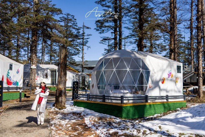 山顶也有住宿的地方,想必是拍摄星空的绝佳地点,一顶一顶的白色帐篷支起来,有机会来这里过夜。有很多玩乐的项目,雪地轮胎,滑雪场,可爱的房子拍照也非常可爱。