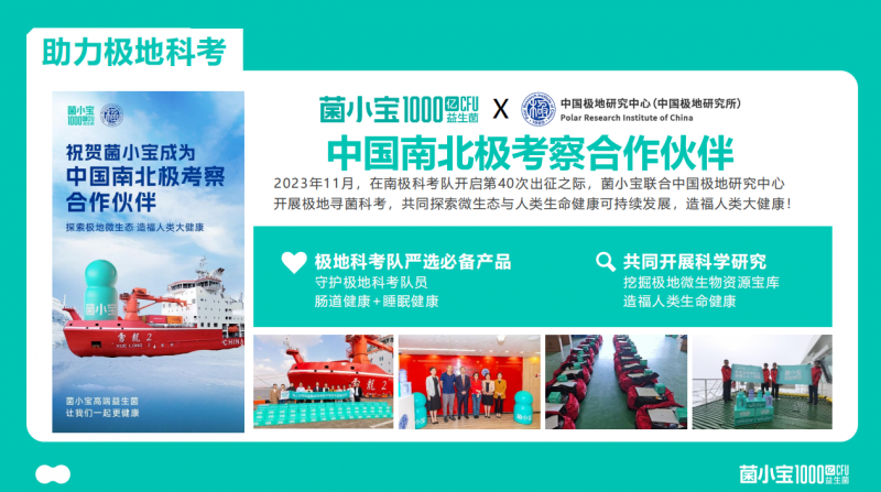 作为中国南北极考察合作伙伴,菌小宝在 2023 年南极第 40 次科考期间,携手中国极地研究中心开展 “极地寻菌” 专项项目。科研团队深入南极大陆,采集冰川、土壤样本中的微生物资源,成功筛选出 3 株耐低温、高活性的益生菌菌株,其中 1 株已应用于 “太空系列” 产品,进一步提升了产品在极端环境下的稳定性。这种跨领域科研合作让研发始终站在行业前沿,最终转化为实打实的产品力:每瓶千亿级活菌相当于 100 杯 1000ml 酸奶的益生菌总和,搭配抽真空充氮、低水活造粒等五大核心技术,实现 99.4% 耐酸存活率,确保活菌顺利穿越胃酸屏障直达肠道。